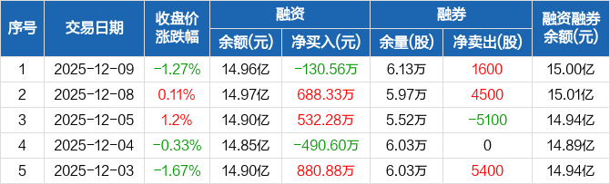 卓胜微:融资净偿还130.56万元,融资余额14.96亿元(12-09)