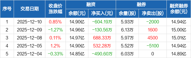 卓胜微:融资净偿还604.19万元,融资余额14.9亿元(12-10)