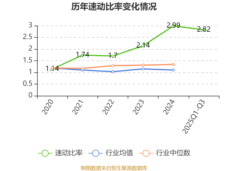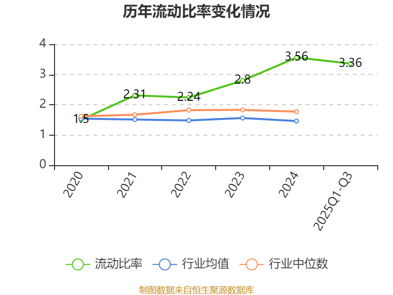 2025年前三季度,公司流动比率为3.36,速动比率为2.82。