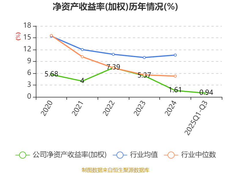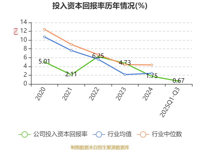 盈利能力方面, 2025年前三季度公司加权平均净资产收益率为0.94%,同比下降2个百分点。公司2025年前三季度投入资本回报率为0.67%,较上年同期下降1.96个百分点。