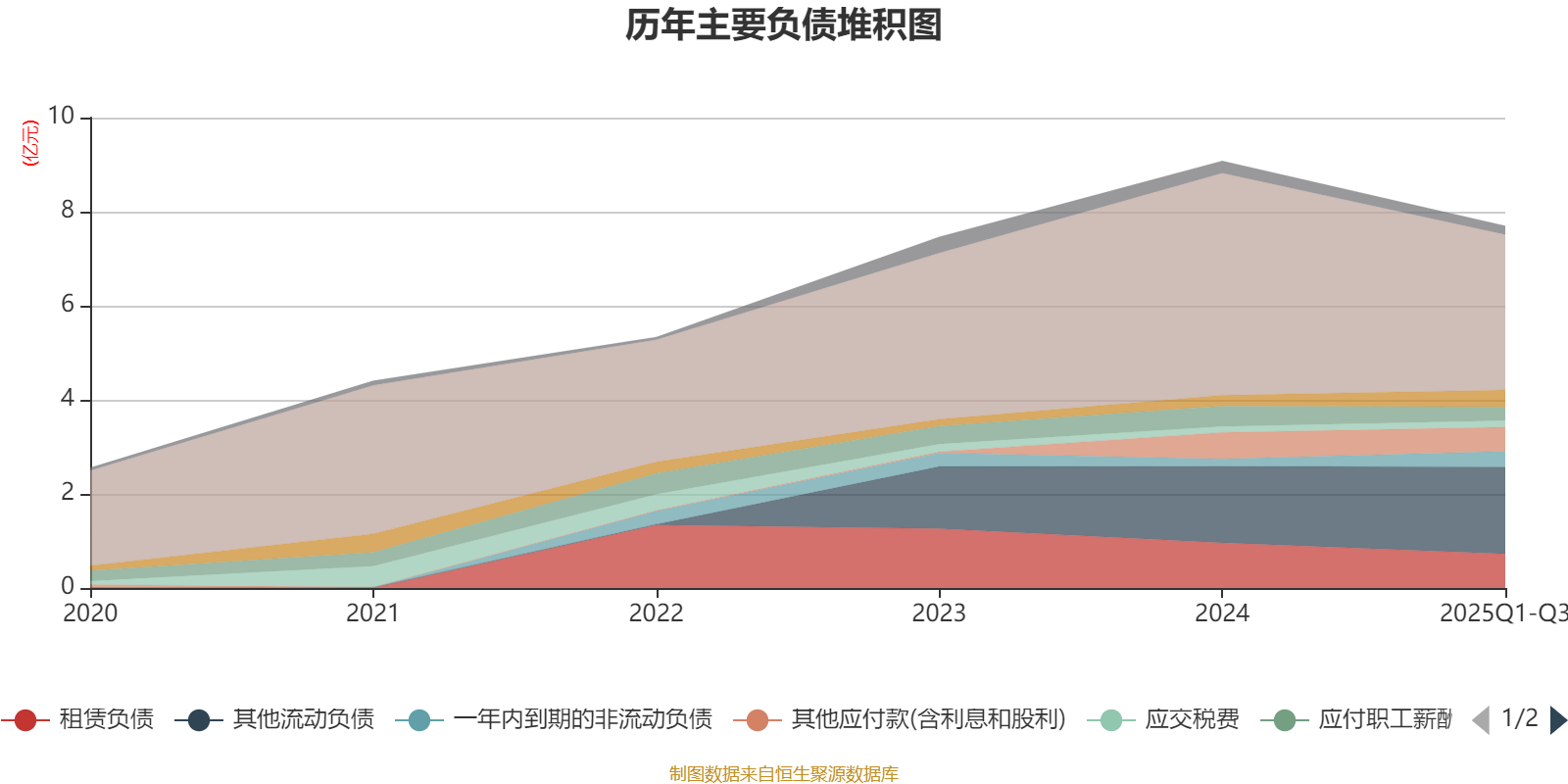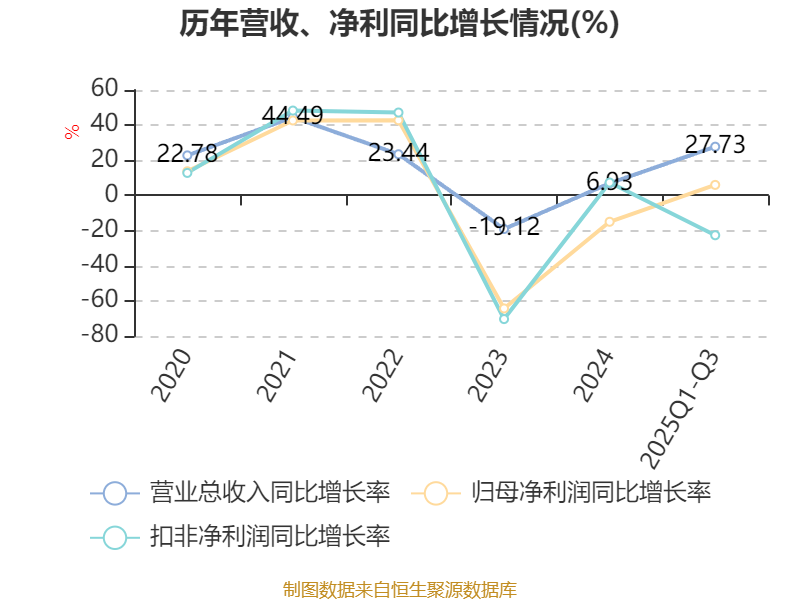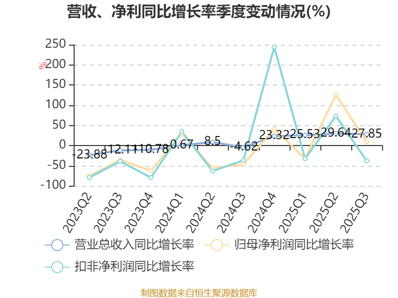 负债重大变化方面,截至2025年三季度末,公司应付票据及应付账款较上年末减少30.01%,占公司总资产比重下降4.1个百分点;其他流动负债较上年末增加13.57%,占公司总资产比重上升0.75个百分点;租赁负债较上年末减少24.71%,占公司总资产比重下降0.68个百分点;一年内到期的非流动负债较上年末增加111.21%,占公司总资产比重上升0.54个百分点。