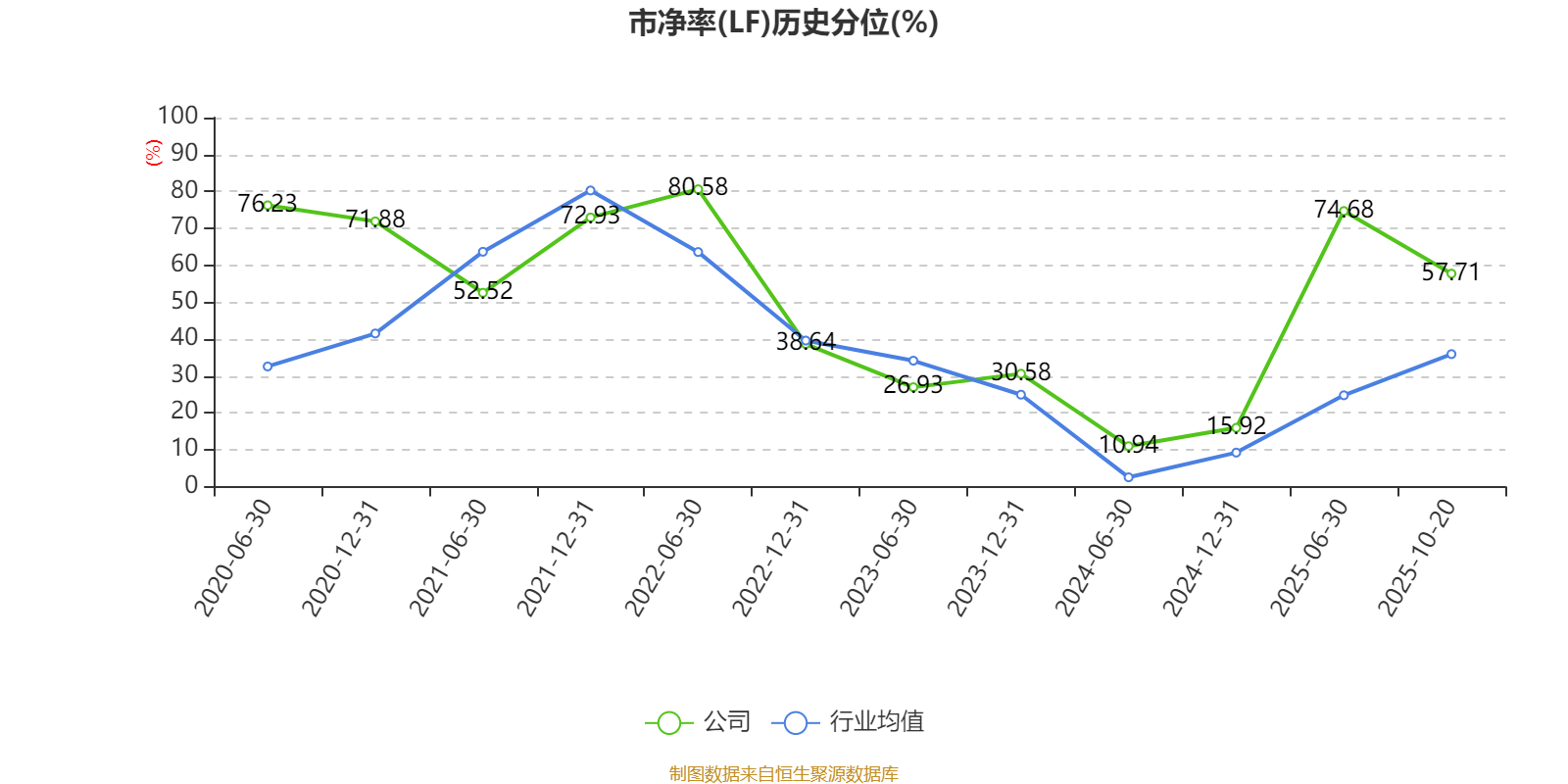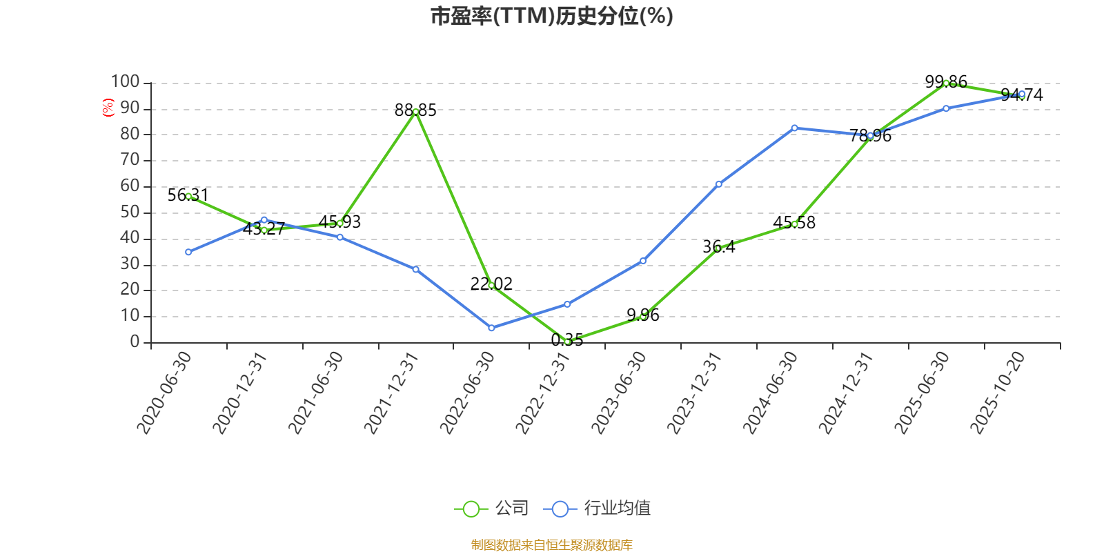 市盈率、市净率为负时,不显示当期分位数,会导致折线图中断。