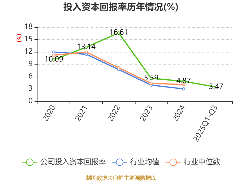 盈利能力方面, 2025年前三季度公司加权平均净资产收益率为3.6%,同比上升0.05个百分点。公司2025年前三季度投入资本回报率为3.47%,较上年同期上升0.26个百分点。