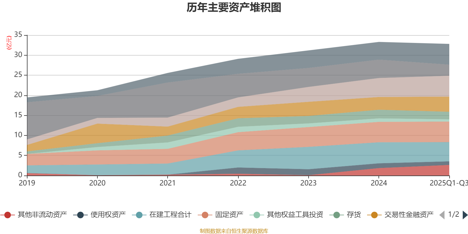 资产重大变化方面,截至2025年三季度末,公司货币资金较上年末减少39.42%,占公司总资产比重下降5.31个百分点;其他非流动资产较上年末增加42.53%,占公司总资产比重上升2.48个百分点;长期待摊费用较上年末增加178.41%,占公司总资产比重上升2.34个百分点;交易性金融资产合计较上年末增加19.28%,占公司总资产比重上升2.01个百分点。