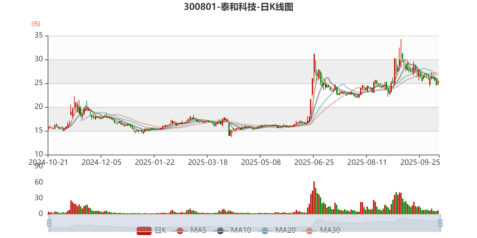 以10月20日收盘价计算,泰和科技目前市盈率(TTM)约为44.16倍,市净率(LF)约2.21倍,市销率(TTM)约1.97倍。