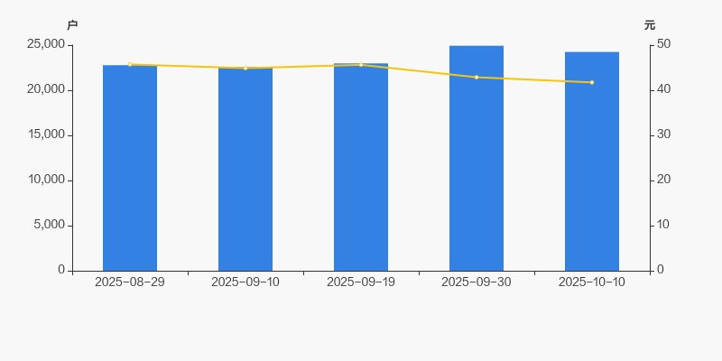 截至2025年10月10日,公司最新总股本为2.54亿股,其中流通股本为1.51亿股。户均持有流通股数量由上期的6039股上升至6210股,户均流通市值25.92万元。
