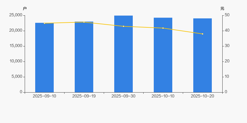 2025年9月10日至今,公司股东户数有所增长,区间涨幅为6.40%。2025年9月10日至2025年10月20日区间股价下降15.48%。