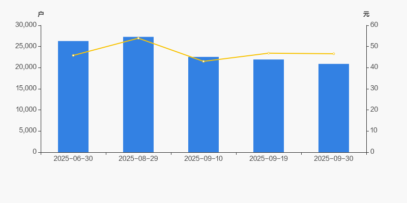 截至2025年9月30日,公司最新总股本为1.18亿股,其中流通股本为1.14亿股。户均持有流通股数量由上期的5197股上升至5456股,户均流通市值25.41万元。