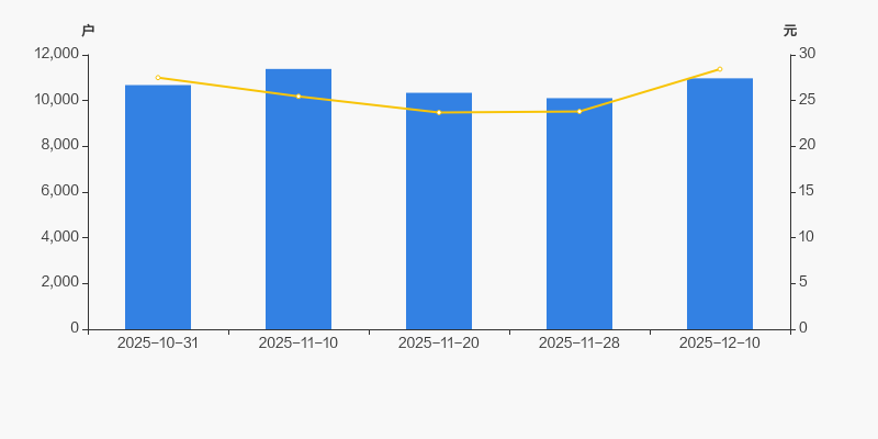 2025年10月31日至今,公司股东户数有所增长,区间涨幅为2.77%。2025年10月31日至2025年12月10日区间股价上涨3.38%。