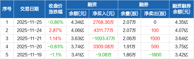 英杰电气:融资余额4.34亿元,创历史新高(11-25)