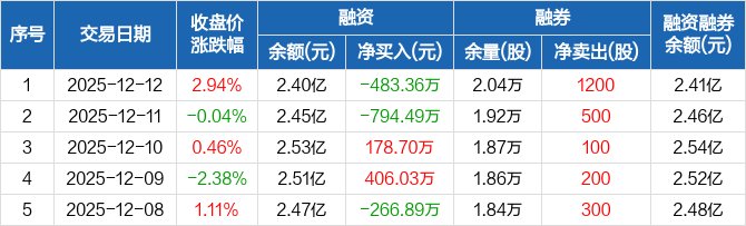 英杰电气:融资净偿还483.36万元,融资余额2.4亿元(12-12)