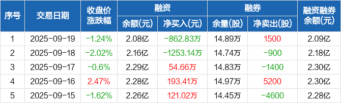 东岳硅材:融资净偿还862.83万元,融资余额2.08亿元(09-19)
