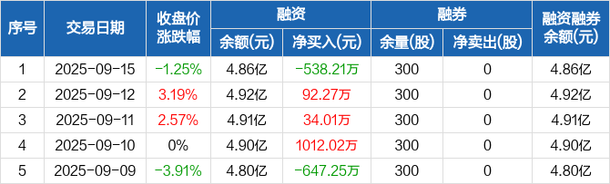 阿尔特:融资净偿还538.21万元,融资余额4.86亿元(09-15)