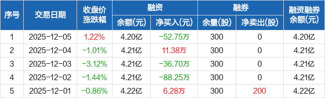 阿尔特:融资净偿还52.75万元,融资余额4.2亿元(12-05)