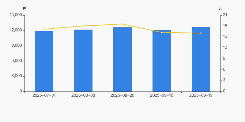 截至2025年9月19日,公司最新总股本为1.66亿股,其中流通股本为1.25亿股。户均持有流通股数量由上期的1.03万股下降至9820股,户均流通市值15.81万元。