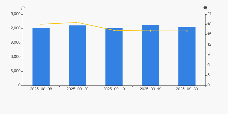 2025年8月8日至今,公司股东户数有所增长,区间涨幅为1.18%。2025年8月8日至2025年9月30日区间股价下降11.07%。
