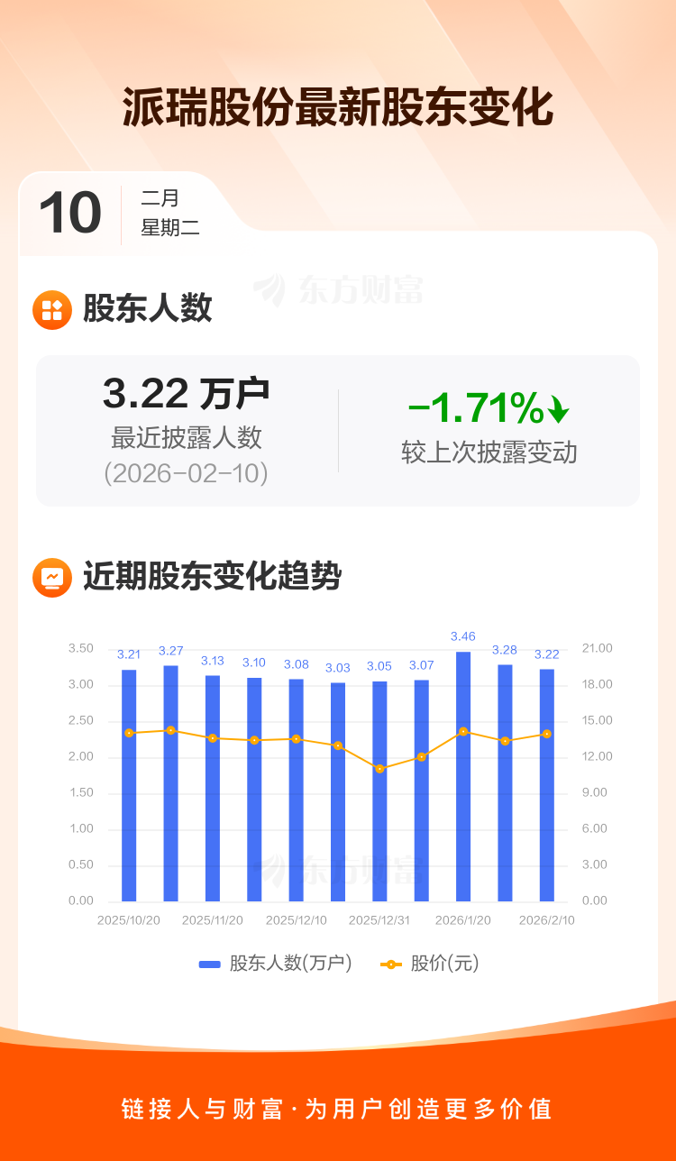 派瑞股份:截至2月10日最新股东户数3.22万户,较上期减少1.71%