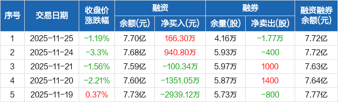 新产业:融资净买入166.3万元,融资余额7.7亿元(11-25)