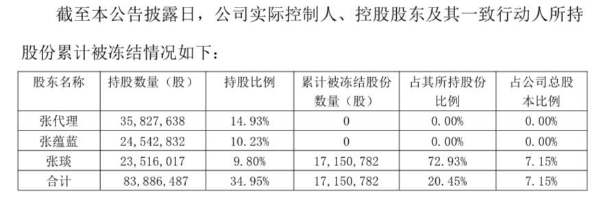 同时公司表示,鉴于张琰不在公司担任董事、高管,且不参与公司日常生产经营管理,本次所持公司股份被冻结不会对公司生产经营、公司治理、公司控制权等产生直接影响。