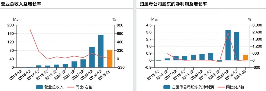 2025年上半年,公司营业收入为83.4亿元,同比上升9.9%;归母净利润为6981万元,同比大幅下滑70.0%;与此同时,经营现金流出现“失血”,净额为-3.3亿元,同比下降151.8%。