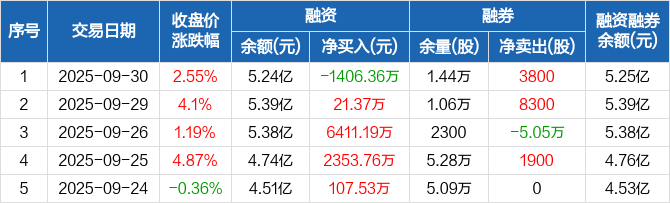 新强联:融资净偿还1406.36万元,融资余额5.24亿元(09-30)