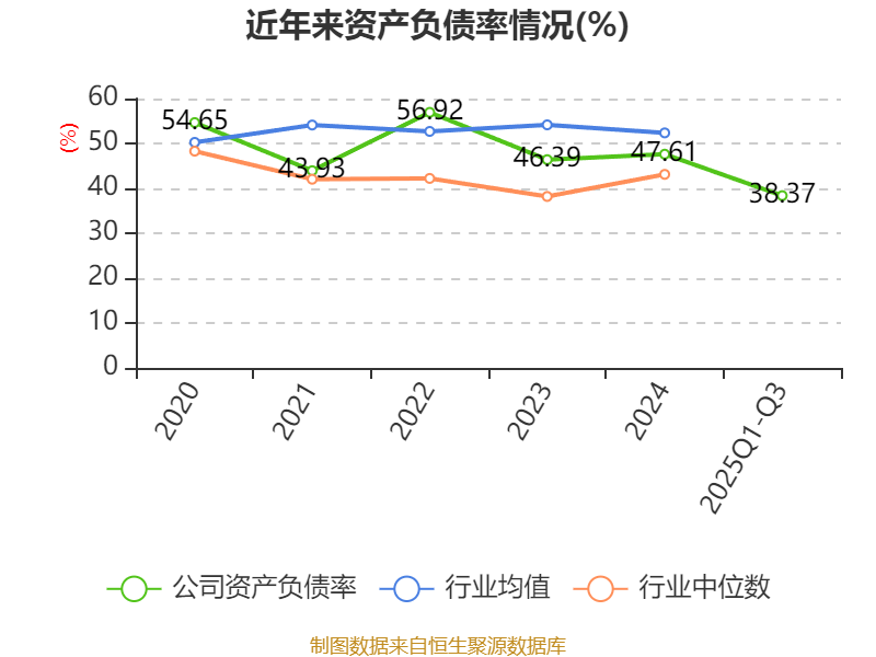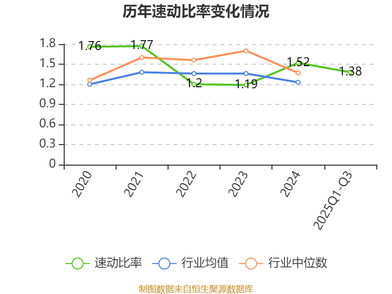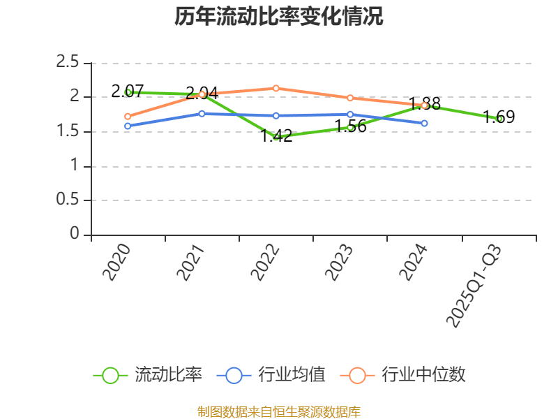 2025年前三季度,公司流动比率为1.69,速动比率为1.38。