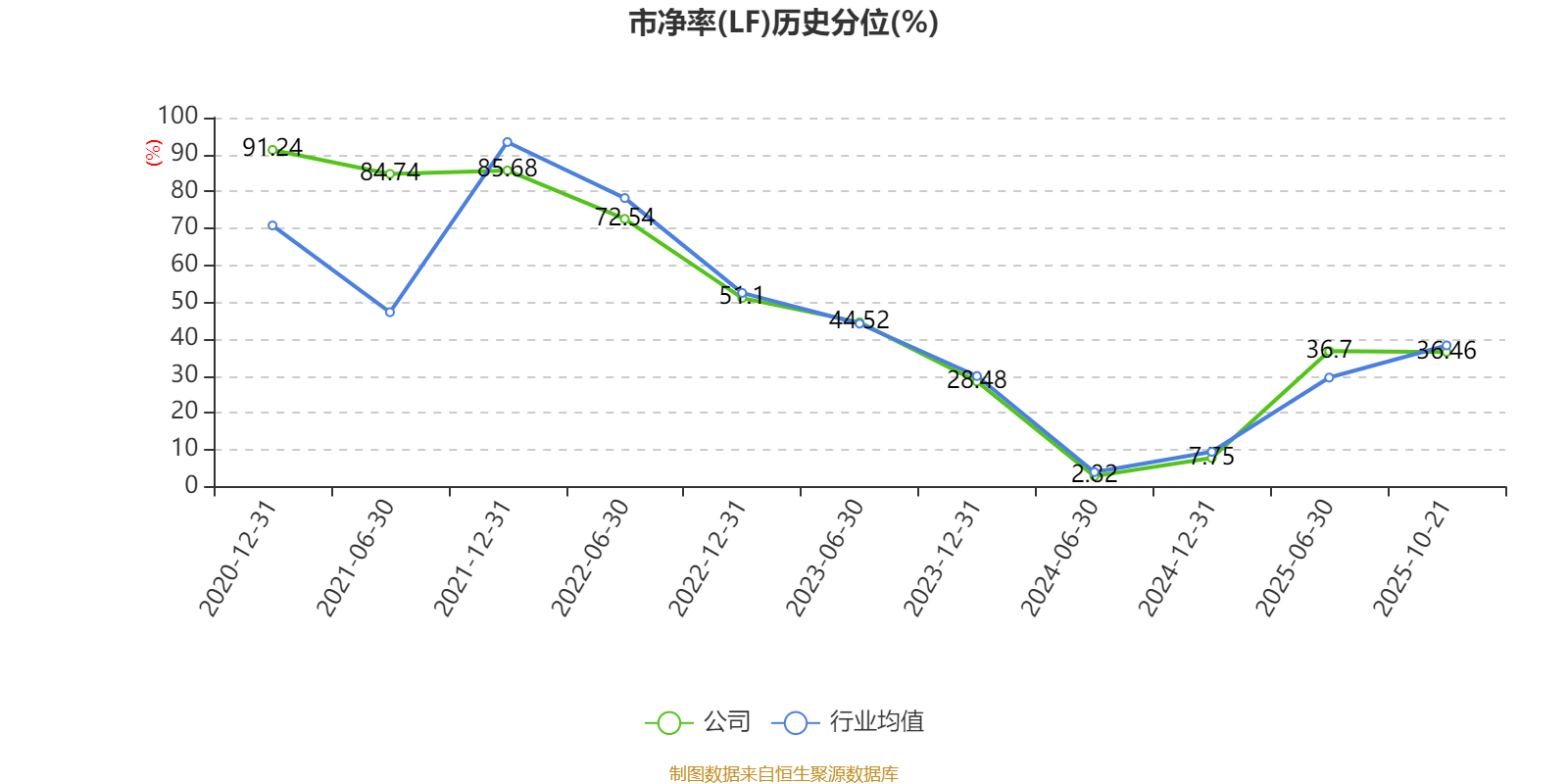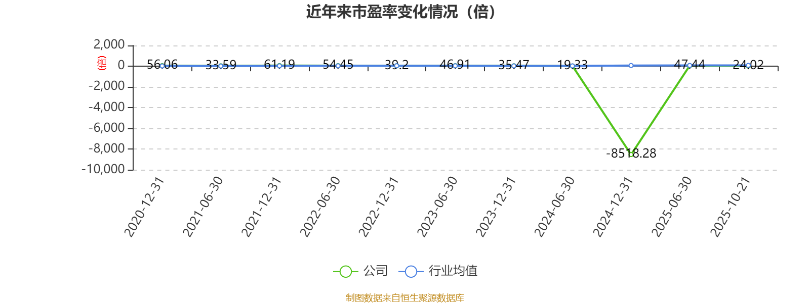 市盈率、市净率为负时,不显示当期分位数,会导致折线图中断。
