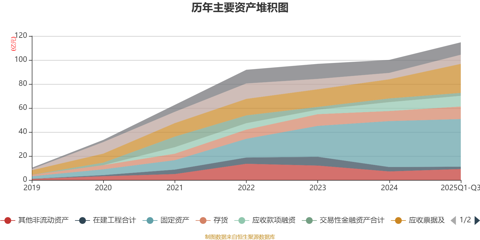 资产重大变化方面,截至2025年三季度末,公司应收票据及应收账款较上年末增加51.92%,占公司总资产比重上升5.17个百分点;固定资产较上年末增加3.63%,占公司总资产比重下降3.69个百分点;在建工程合计较上年末减少47.96%,占公司总资产比重下降1.98个百分点;货币资金较上年末增加42.07%,占公司总资产比重上升1.28个百分点。