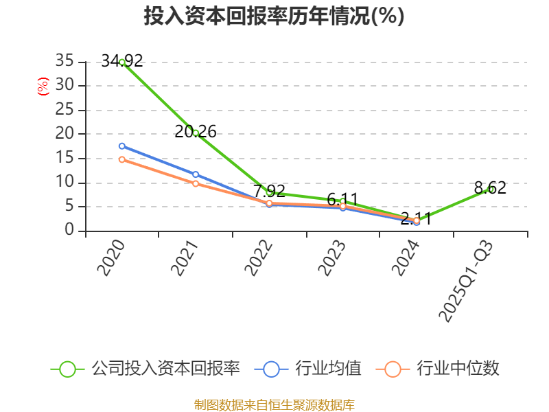 盈利能力方面, 2025年前三季度公司加权平均净资产收益率为12.07%,同比上升12.79个百分点。公司2025年前三季度投入资本回报率为8.62%,较上年同期上升8.22个百分点。