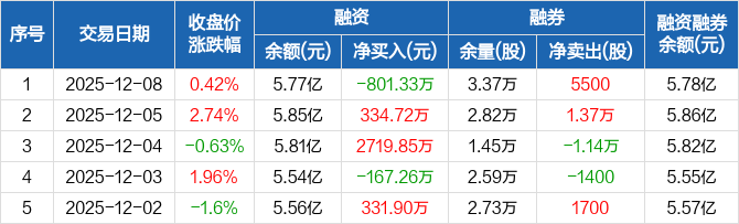 新强联:融资净偿还801.33万元,融资余额5.77亿元(12-08)