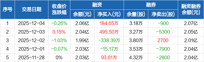 图南股份:融资净买入184.65万元,融资余额2.06亿元(12-04)
