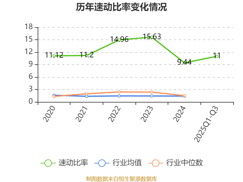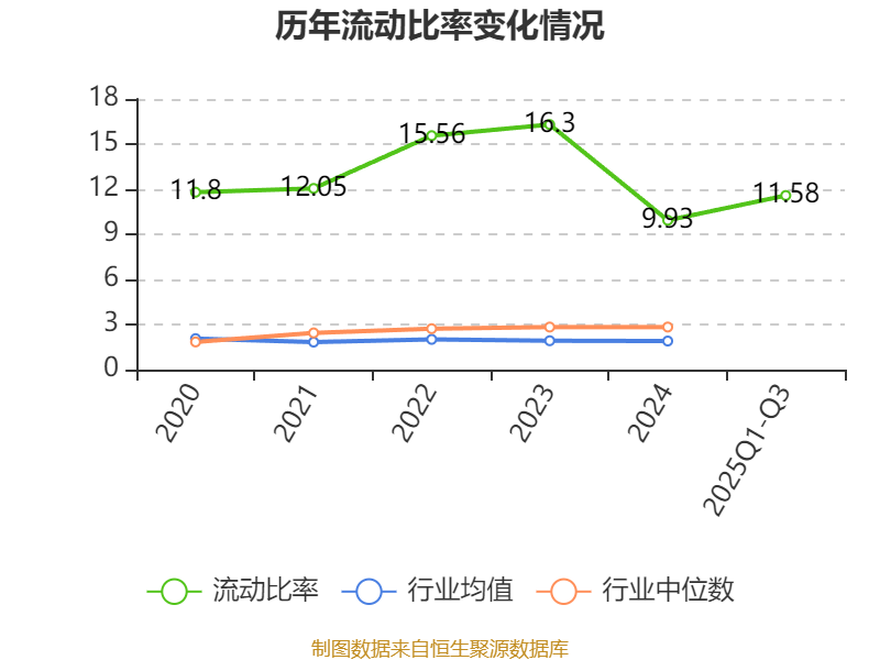 2025年前三季度,公司流动比率为11.58,速动比率为11。