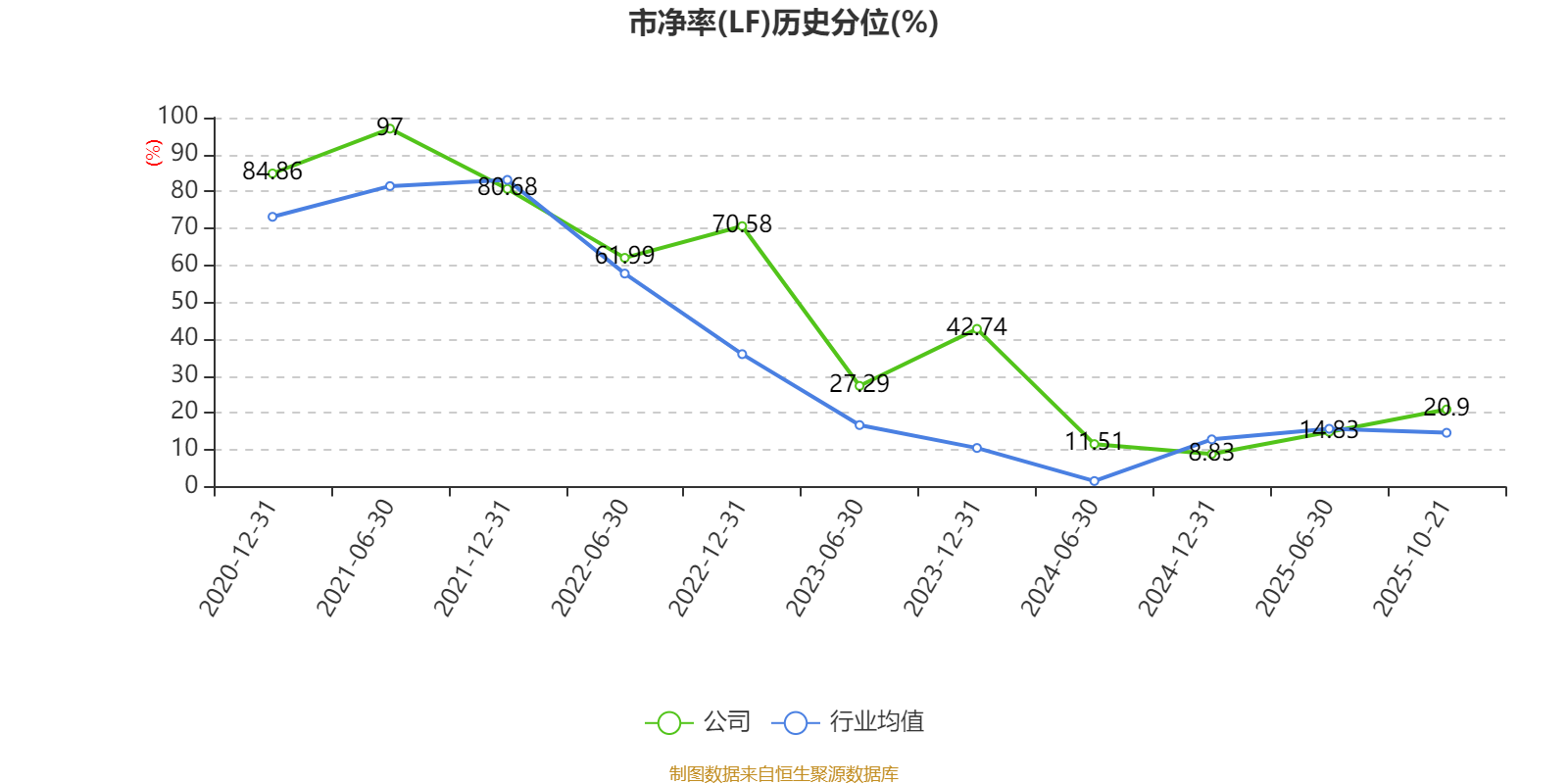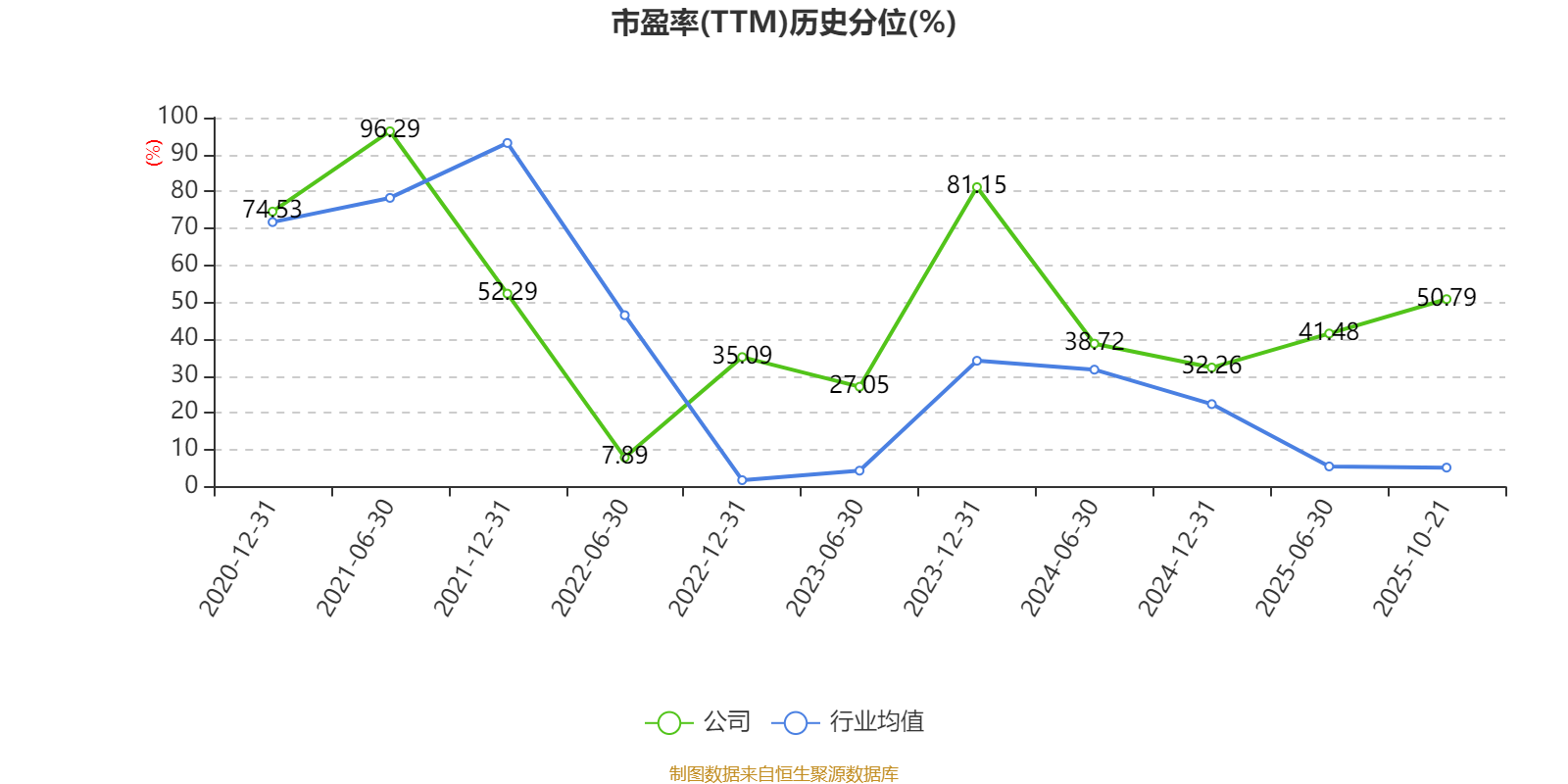 市盈率、市净率为负时,不显示当期分位数,会导致折线图中断。