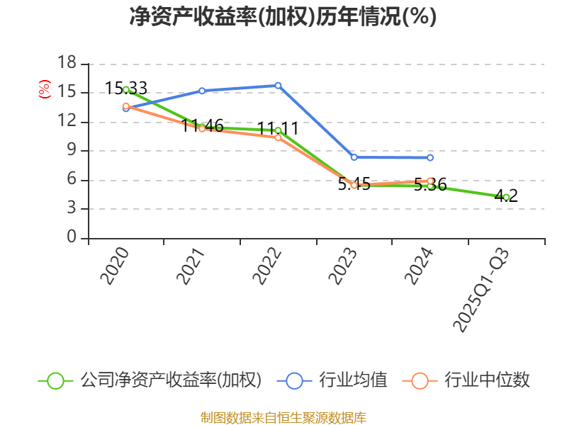 盈利能力方面, 2025年前三季度公司加权平均净资产收益率为4.2%,同比上升0.14个百分点。公司2025年前三季度投入资本回报率为3.52%,较上年同期上升0.48个百分点。
