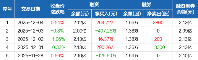 美畅股份:融资净买入264.72万元,融资余额2.12亿元(12-04)