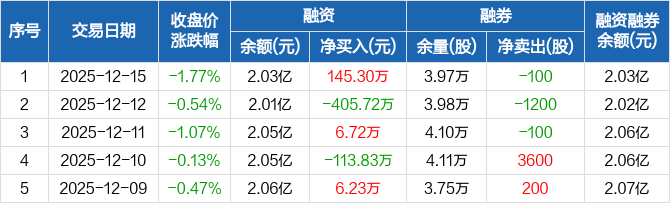 美畅股份:融资净买入145.3万元,融资余额2.03亿元(12-15)