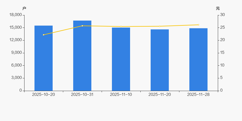 截至2025年11月28日,公司最新总股本为1.85亿股,其中流通股本为1.51亿股。户均持有流通股数量由上期的1.04万股下降至1.02万股,户均流通市值26.63万元。
