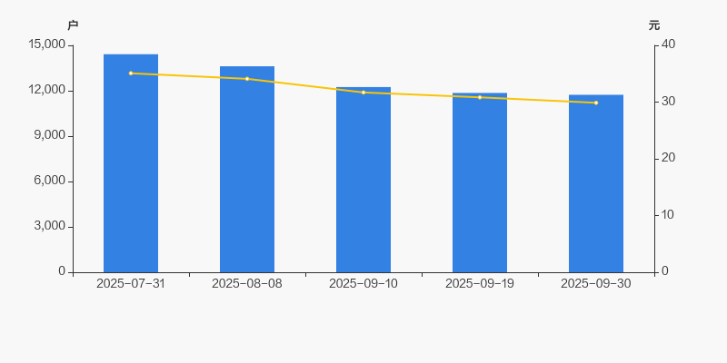 自2025年7月31日以来,公司股东户数连续4期下降,截至目前减幅为18.61%。2025年7月31日至2025年9月30日区间股价下降14.82%。