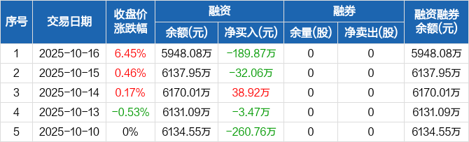 大宏立:融资净偿还189.87万元,融资余额5948.08万元(10-16)