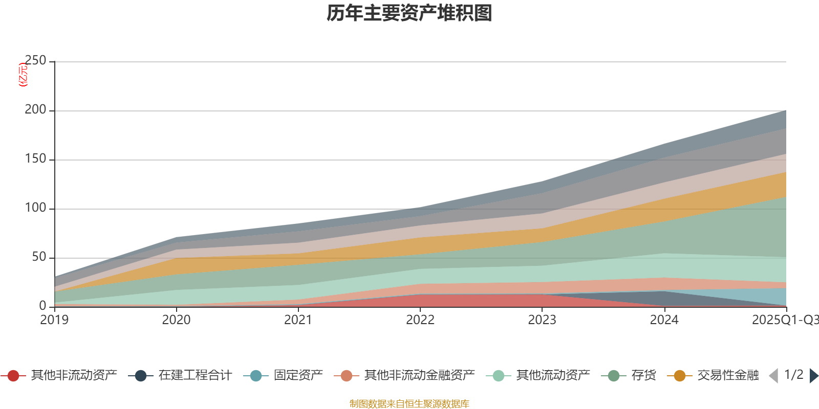 资产重大变化方面,截至2025年三季度末,公司存货较上年末增加90.11%,占公司总资产比重上升11.23个百分点;在建工程合计较上年末减少100%,占公司总资产比重下降8.99个百分点;固定资产较上年末增加1296.39%,占公司总资产比重上升8.11个百分点;其他非流动金融资产较上年末减少53.35%,占公司总资产比重下降4.69个百分点。