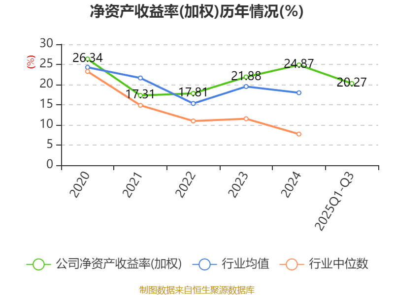 盈利能力方面, 2025年前三季度公司加权平均净资产收益率为20.27%,同比上升2.47个百分点。公司2025年前三季度投入资本回报率为16.43%,较上年同期上升0.4个百分点。