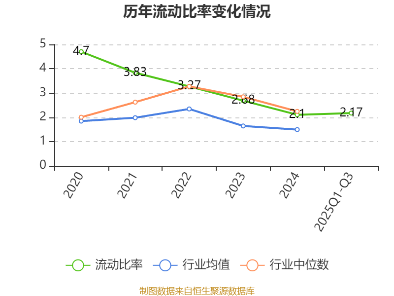 2025年前三季度,公司流动比率为2.17,速动比率为1.34。