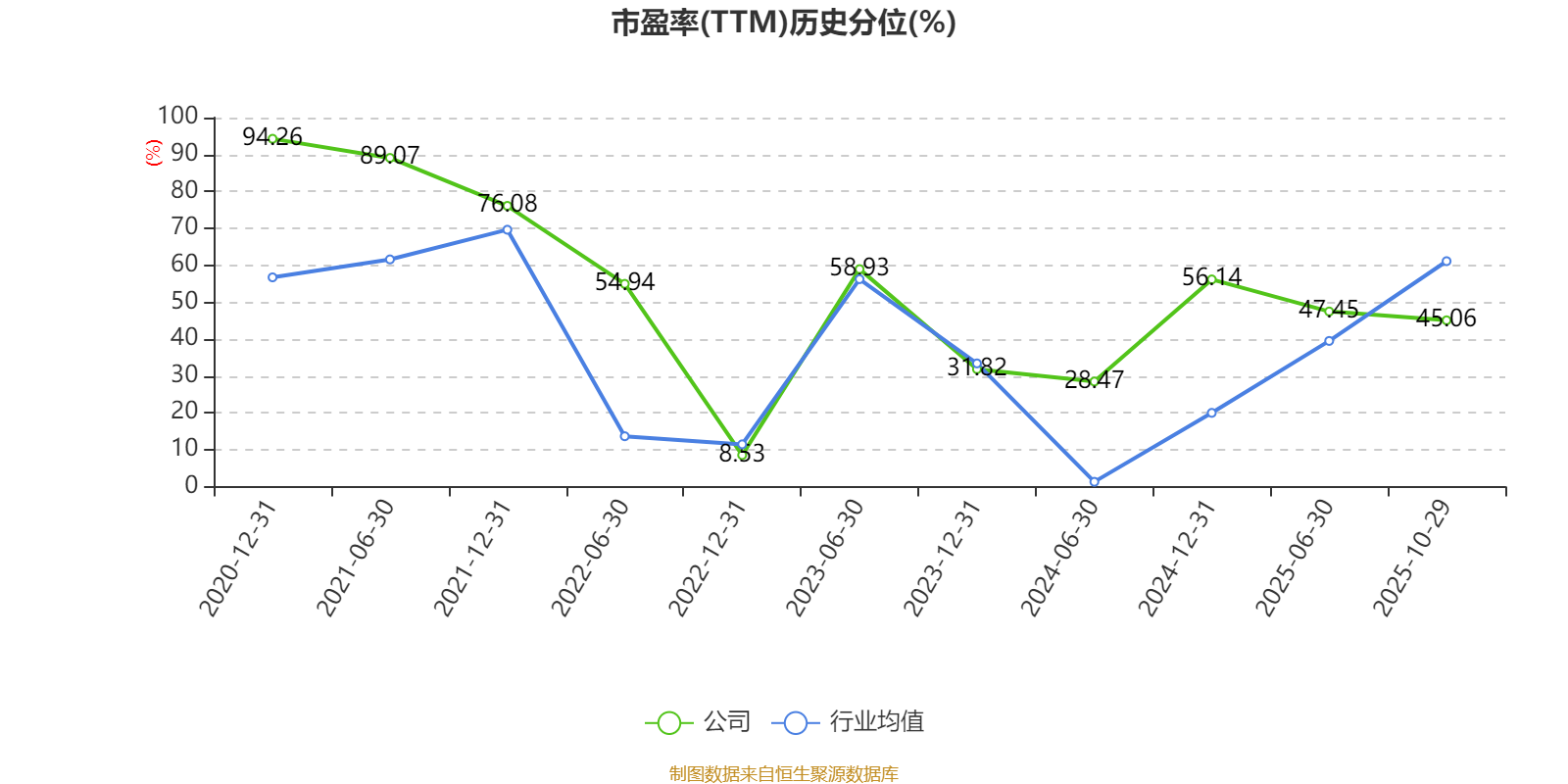 市盈率、市净率为负时,不显示当期分位数,会导致折线图中断。