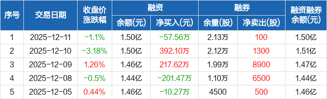 康泰医学:融资净偿还57.56万元,融资余额1.5亿元(12-11)