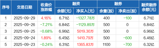 欧陆通:融资净偿还1327.78万元,融资余额6.71亿元(09-29)