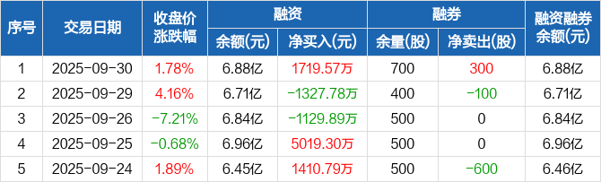 欧陆通:融资净买入1719.57万元,融资余额6.88亿元(09-30)