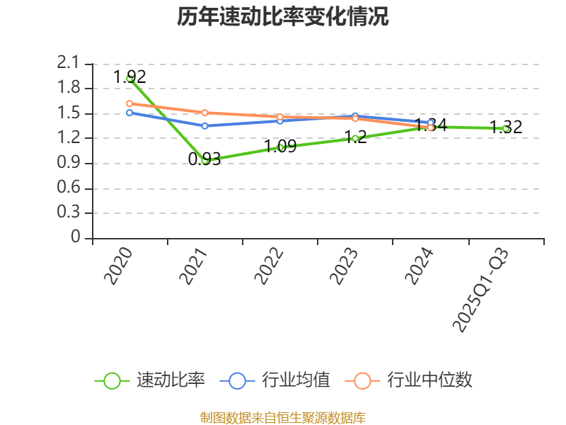 2025年前三季度,公司流动比率为1.56,速动比率为1.32。