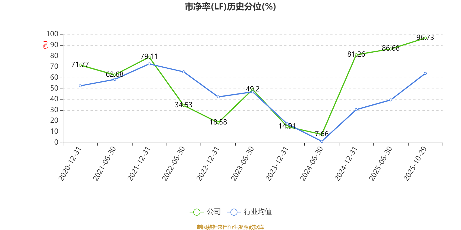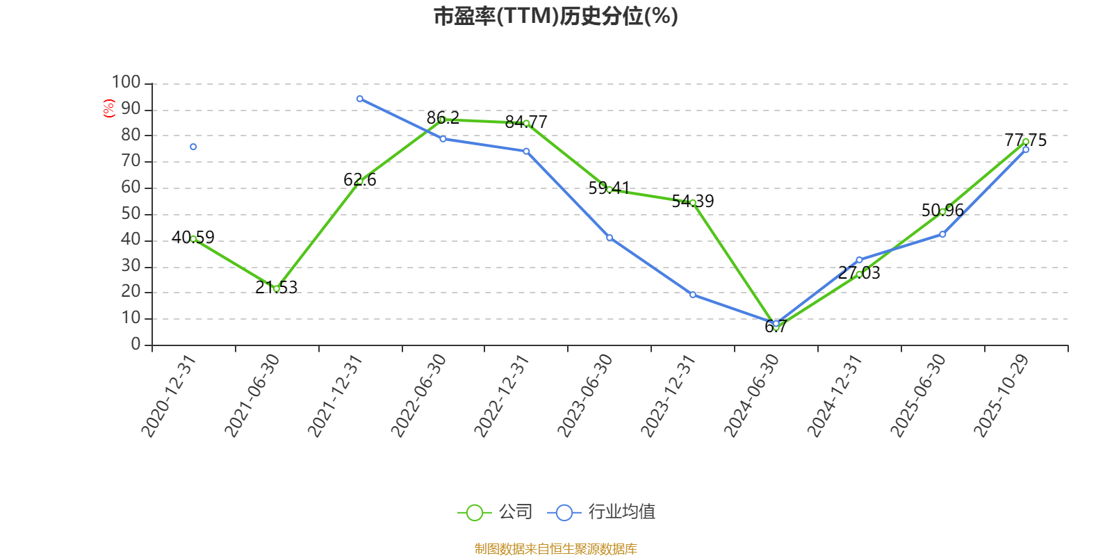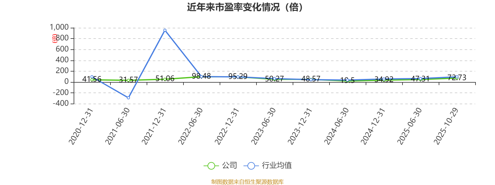 市盈率、市净率为负时,不显示当期分位数,会导致折线图中断。