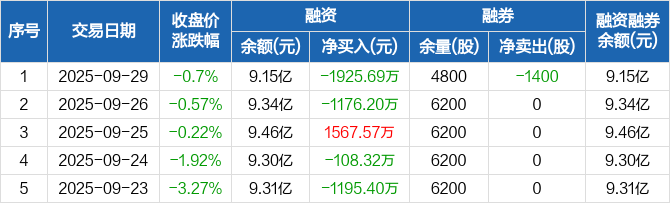 天阳科技:融资净偿还1925.69万元,融资余额9.15亿元(09-29)
