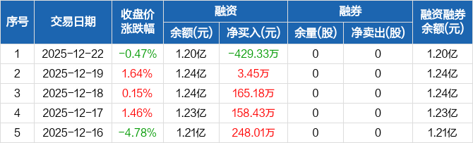 捷强装备:融资净偿还429.33万元,融资余额1.2亿元(12-22)